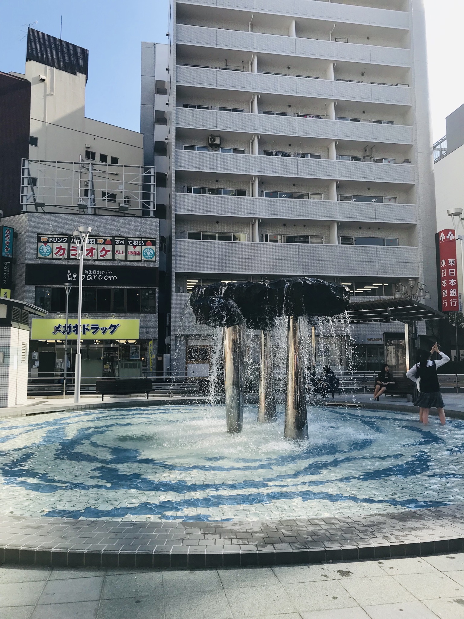 板橋駅前でひと休みしてたら、噴水広場で学生さん達が水浴びして遊んでました⛲️