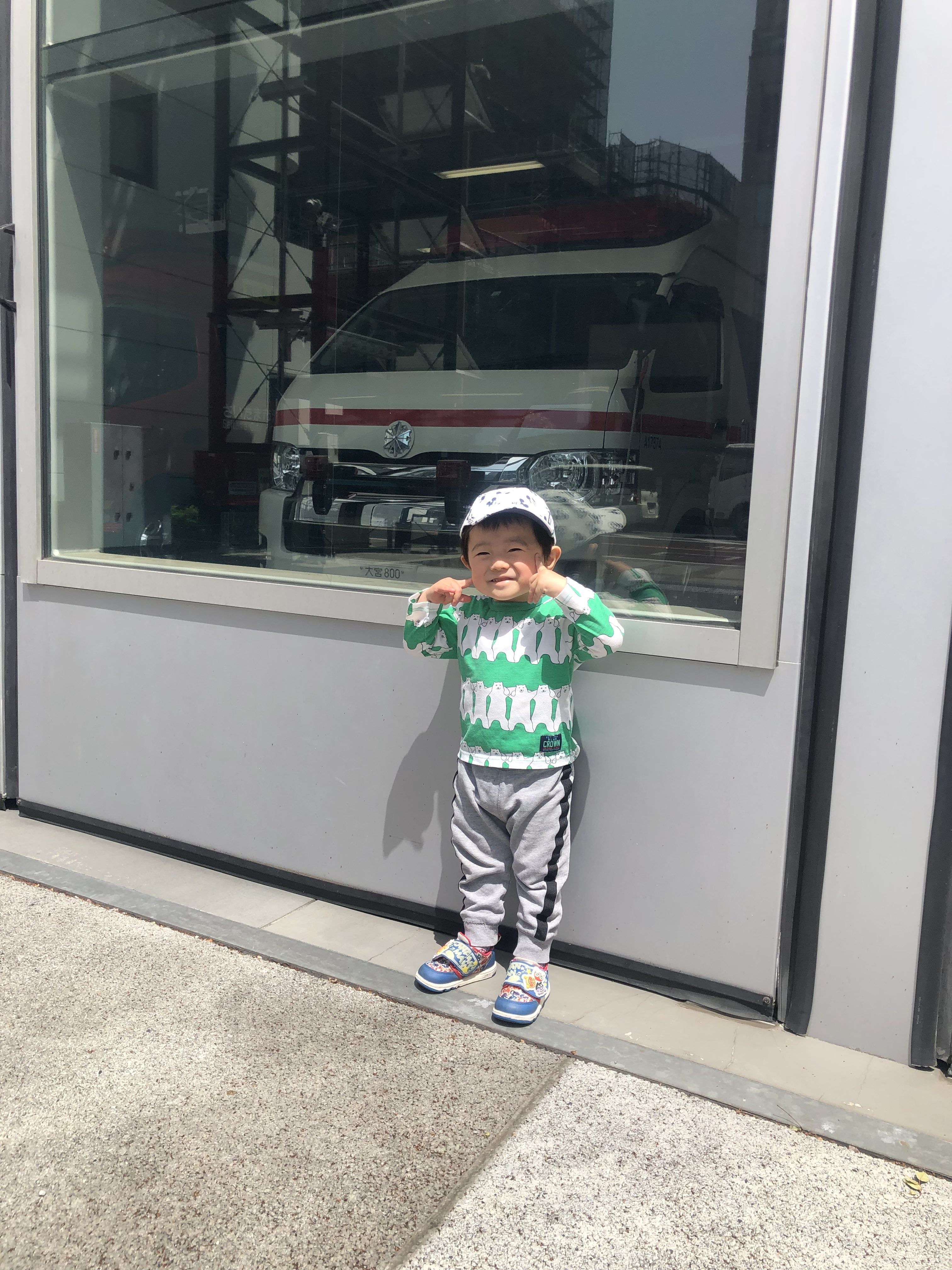 大好きな救急車🚑と一緒に写真撮ってあげました😆